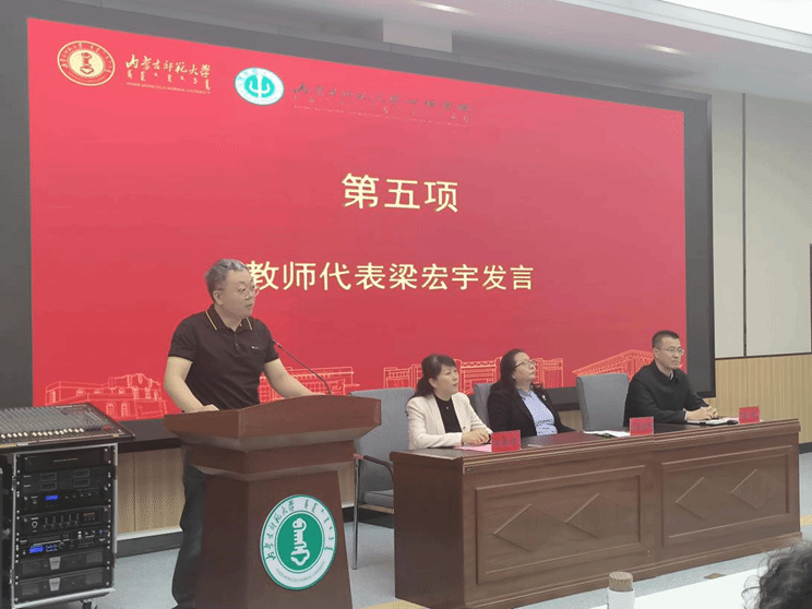 教师代表梁宏宇分享了自己深耕心理学领域的感悟与心得,并希望同学们懂得感恩、主动进取、勇于尝试,努力奋斗,做一个有温度的心理人。