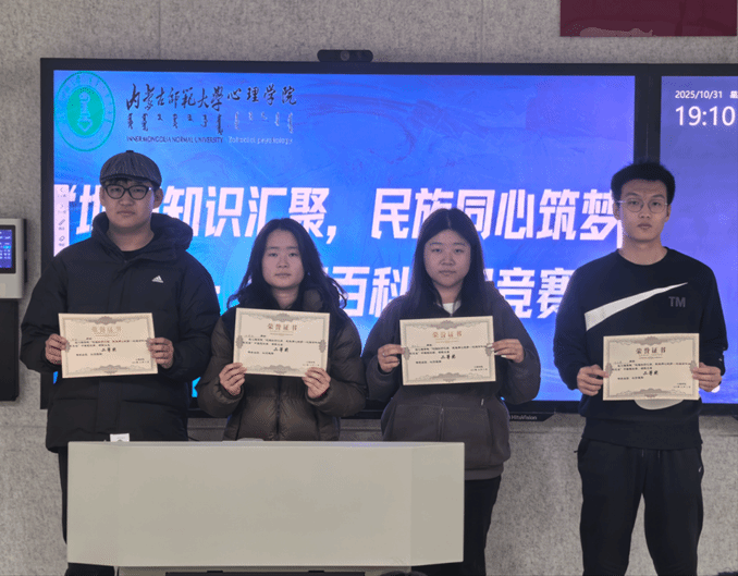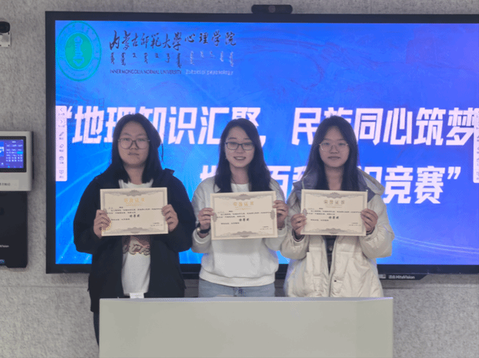 赛场之上,同学们化身“地理达人”,大家沉着应答、默契配合,用扎实的知识储备和敏捷的反应速度,将地理之美娓娓道来,充分彰显了心理学院学子博闻强识、全面发展的良好风貌。通过这次竞赛大家不仅在角逐中收获了荣誉与成长,更让地理知识成为连接民族情感的纽带。经过激烈的角逐,竞赛最终评选出特等奖3名、一等奖4名、二等奖4名,每一份荣誉都承载着对求知者的嘉奖,更是对跨学科学习热情的肯定。